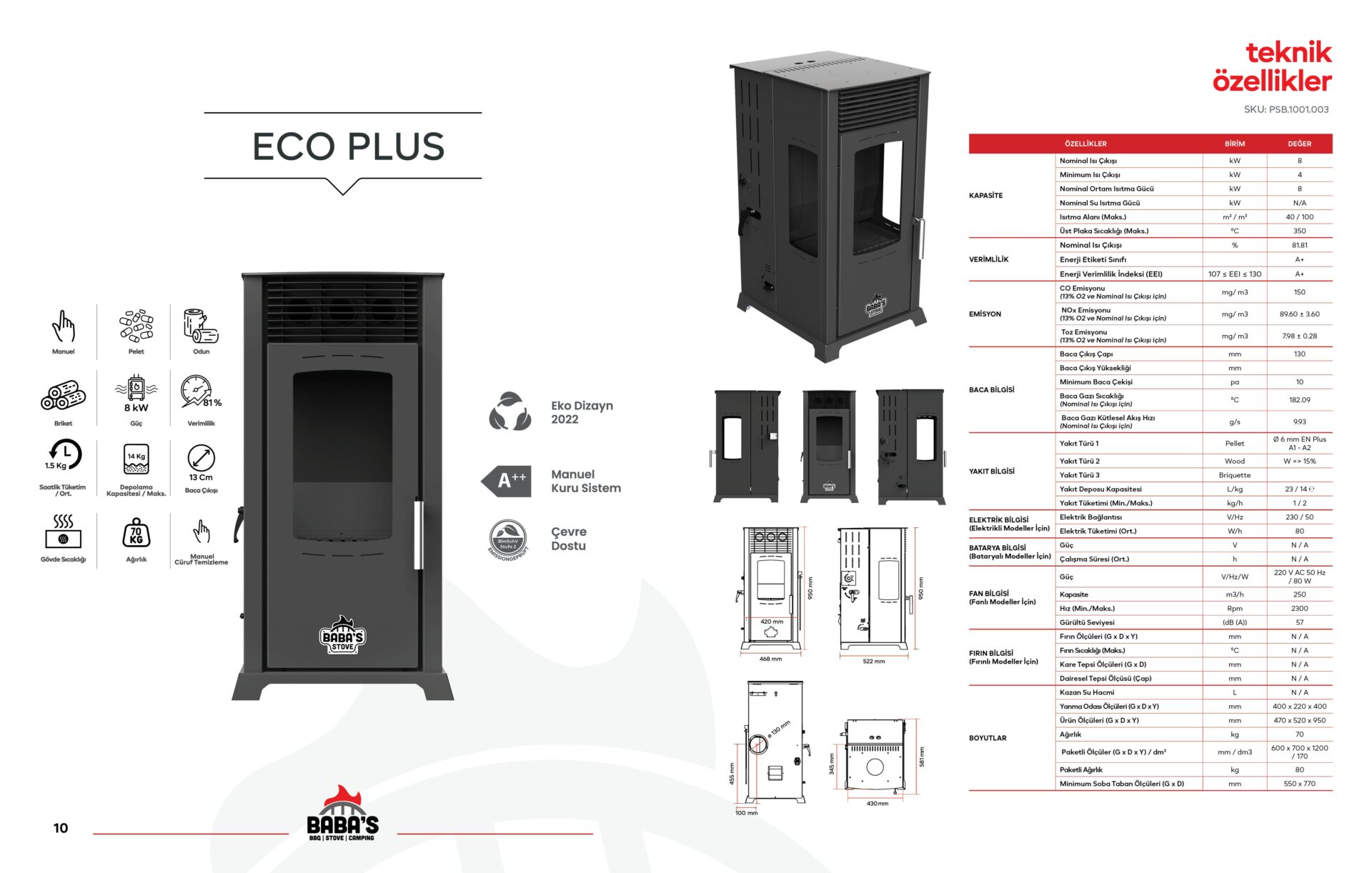 De Eco plus met een vermogen van 8Kw verwarmt een oppervlakte van 40/50m2 binnen 15 tot 20 min.De vlam is goed te regelen via het luchtcontrolesysteem van de kachel.Ook kunt u de kachel brandend van pellets op hout zetten met het  bijgeleverde stookrooster.